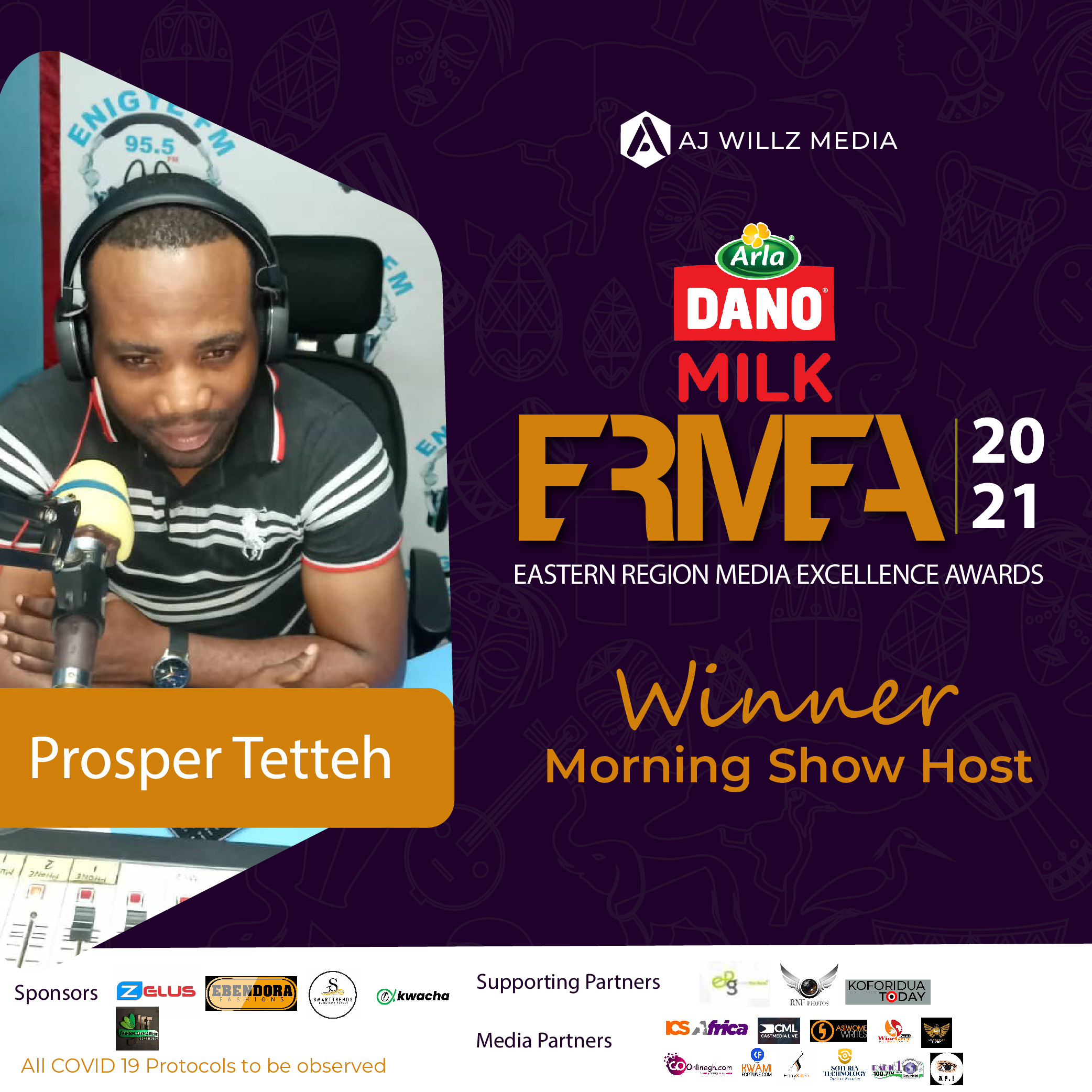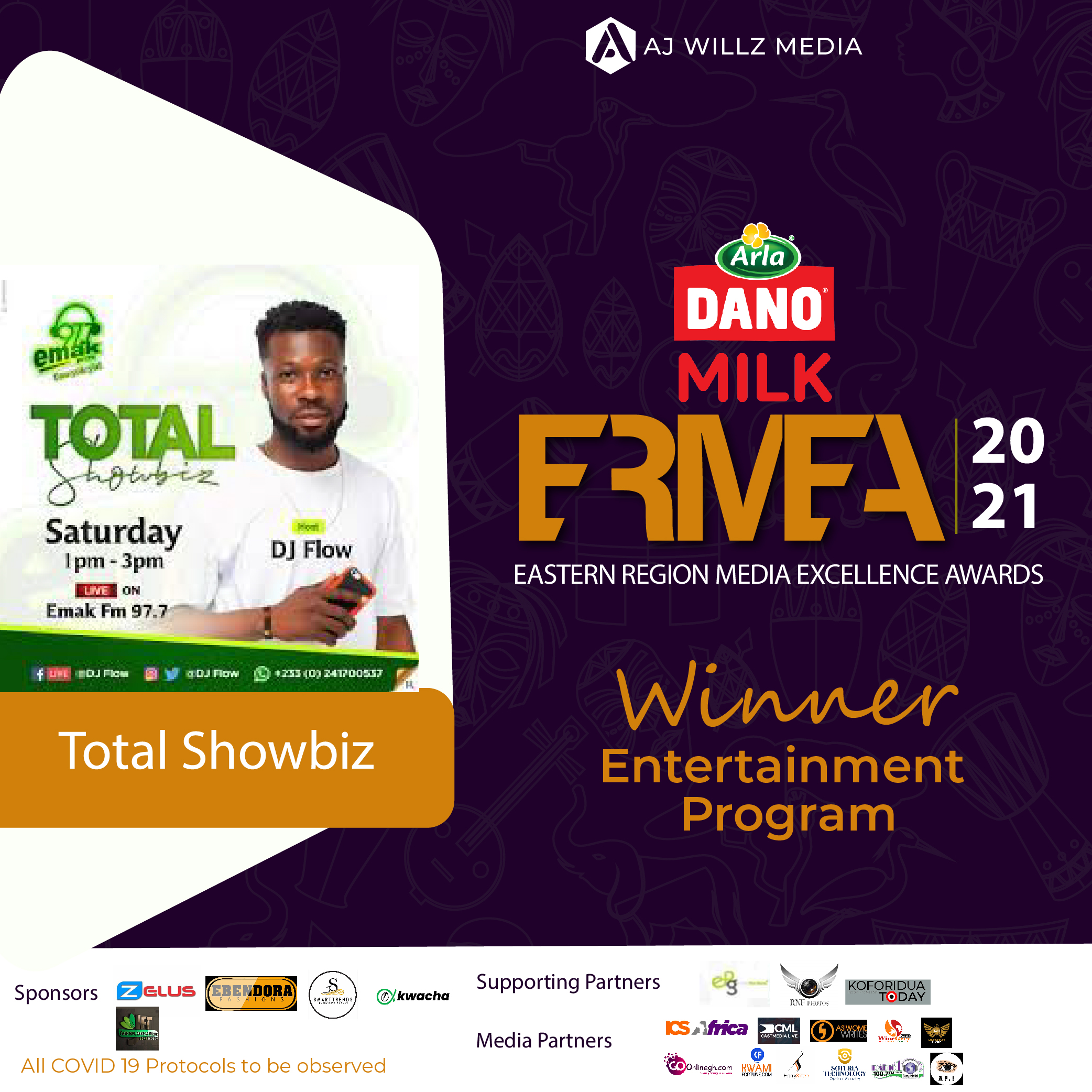 FourthEdition The Eastern Region Media Excellence Awards Fourth Edition 2021 was held in Koforidua at the Ghana Library Authority Hall in. There were over 20 categories to be awarded at the edition. Fourth edition winners Emak Total SportSports Program of the Year Elikem Dzamey IIEntertainment Show Host-MyFm DJ FlowMale Presenter of the Year - Emak Fm DJ BrightPromoter of the Year - Akyemansa FM Captain AdabugarERMEA Media Personality Bryt FmStation of the Year Barbie DerbieERMEA Pride Personality - Joy Prime Michael AgyapaBlogger of the Year - DNG Adekye NsromaPolitical Program of the Year - Nkonim Fm Total ShowbizEntertainment Program of the Year Tina BabyFemale Presenter of the Year - Rite Fm Robert QuotationSports Presenter of the Year - Emak Prosper TettehMorning Show Host of the Year - Enigye Fm Nana Yaw PhillaMid-Morning Show Host of the Year - Ananse Fm Ocean BoyDrive Time Host of the Year - Enigye Fm My Fm Drive TimeDrive Time Program of the Year Michael AkrofiReporter of the Year - Peace Fm Me Ne Wa AponmudenHealth Related Program of the Year - Radio 1 DJ MaxxDj Of the Year General ManuchoProgram producer of the Year Life NewsNews Program of the Year - Life Fm Gospel KetekeReligious Program of the Year - Susubiribi Fm Atesem HemaaNews Caster of the Year - Bryt Fm Abena AmpofoEmerging Media Personality - Radio 1